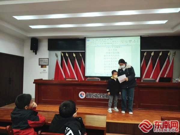 观看视频了解元旦的由来和习俗(湖边社区供图) 东南网12月26日讯(通讯员 黄晓霞)为了让加深幼儿对元旦的认识和了解,体验元旦的喜庆气氛,近日,厦门市湖里区湖边社区开展了“喜迎元旦 悦享书香”主题诵读亲子活动,大家一起诵读诗词,快快乐乐迎元旦。 在老师的带领下,大家一起观看视频了解元旦的由来和习俗。在元旦这一天,在传统习俗中会喝椒柏酒、喝桃汤、吃胶牙糖等,这些都寓意着在新的一年里可以健健康康。