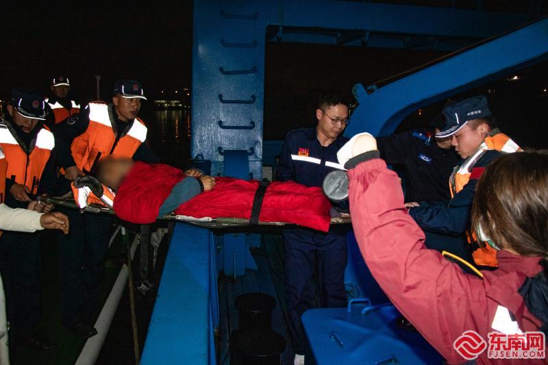 厦门海警午夜海上救援 成功救助一名受伤船员