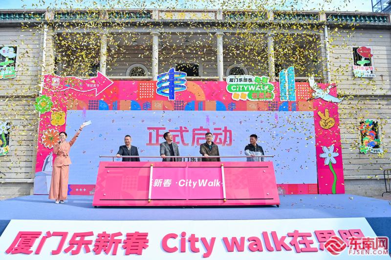“厦门乐新春·City walk在思明”元旦当天启动(东南网记者 刘玮 摄) 东南网1月1日讯(记者 刘玮)2024年1月1日,“厦门乐新春·City walk在思明”活动在新年第一天正式启动。作为思明区2024年第一场文体旅融合活动,本次活动聚焦时下新潮的“城市漫步”(City walk),结合元旦、寒假、春节等节点精心打造文旅消费新场景。 “厦门乐新春·City walk在思明”整合思明区文体旅资源,推出思明City walk体验日、思明City walk精品线路、思明City walk种草大赛、思明City walk体验官直播、BOSS直播等一系列“线下+线上”的活动,引导游客深度体验思明区的山海风光和城市烟火气,强化新春游思明宣传推广,助力该区文旅产业高质量发展。 此次活动由思明区政府指导,思明区文旅局、思明区商务局联合主办。来自思明区文旅局、思明区滨海街道、思明区文旅协会、文旅企业的相关负责人及各大主流媒体、市民游客等400多人参与了启动仪式。
