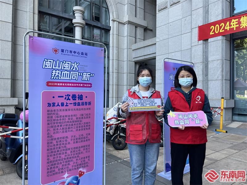 志愿者现场宣传无偿献血(东南网记者 李霖 摄)
