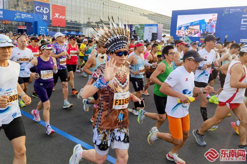 穿着印第安装束的跑者从起跑点出发(东南网记者 刘玮 摄)