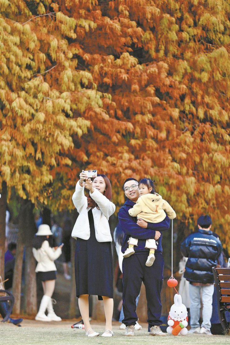 园博苑澳门园一带的落羽杉进入最佳观赏期,不少市民前往打卡。