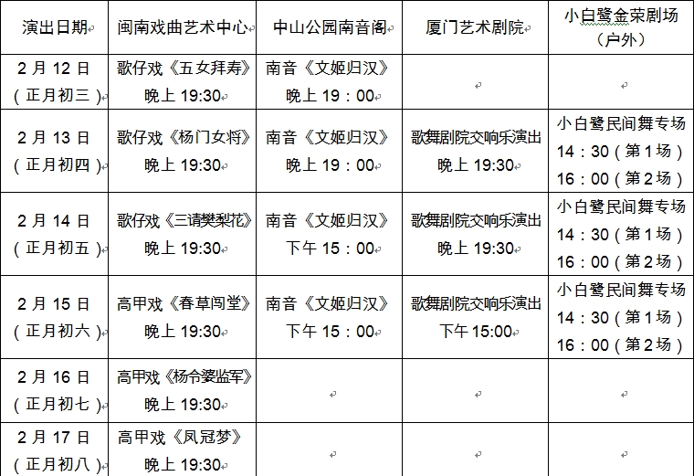 东南网1月20日讯(记者 卢超颖)新春佳节将至,厦门市将于春节假日期间推出八条便民惠民措施,全市部分道路免费停车、举办精品文艺演出、新春促销消费节、向幸运游客发放文创礼包……一系列出行便利举措、文旅盛宴齐上线,让游客乘兴而来,尽兴而归,在鹭岛乐享春节假期,获得更加舒适的旅游体验,感受厦门这座温馨城市的暖心服务。 举措一:全市道路临时停车泊位实行分区域、分时段免费停放。 解读:农历除夕至正月初八,厦门市实行全市道路临时停车泊位分区域、分时段免费停放。其中,中山路商圈和环岛路沿线的近500个道路临时停车泊位在每日22:00至次日7:30实行免费停放,其他时段首次停放免费时长延长至4小时。全市其他道路临时停车泊位全天免费停放。全市1200余个错时停车泊位(即日常夜间时段路面停车泊位)全天开放。 举措二:增开2条景点之间的免费公交往返摆渡专线,分别为:轮渡码头-国际邮轮中心、珍珠湾-会展中心。增开8条途经厦门大学、沙坡尾、环岛路、海沧天竺山等热门景区景点的公交旅游专线;加密57条途经景区景点的公交线路班次。 解读:为方便市民游客假期出行,打通假期旅游交通“堵点”,农历正月初一至初八,厦门市提供春节假期公交服务便民措施,优化提升公交运营服务保障能力,让广大市民游客少等待、少拥挤、快出行。增开的2条免费公交往返摆渡专线方便游客往返邮轮中心码头和轮渡、中山路、会展中心片区。开通厦门大学—沙坡尾片区假日微循环专线等8条途径热门景区景点的公交旅游专线。此外,加密途经厦门大学、环岛路片区的18路公交线路,途经海沧天竺山的1路公交线路,途经集美园博苑的25条公交线路,途经同安方特的11条公交线路,途经翔安下潭尾湿地公园的2条公交线路的运行班次。 举措三:厦门大学思明校区每天参观名额增加至1.5万人。 解读:农历正月初一至初八,厦门大学思明校区访客预约入校人数,从国家法定节假日1万人增加至1.5万人。 举措四:游客住宿鼓浪屿,在岛期间,可经轮渡公司所有码头进出鼓浪屿。 解读:为方便鼓浪屿住宿游客出行、旅游、观光,厦门市春节期间优化厦鼓航线过渡方式,入住鼓浪屿家庭旅馆或酒店的游客,除了首次登岛自行购票乘船之外,入住后由旅馆或酒店管理方通过“鼓浪屿绿色通道登记系统”上传住宿游客人员信息,游客即可在入住期间经厦门轮渡码头、邮轮中心厦鼓码头、第一码头、嵩鼓码头凭身份证购票往返鼓浪屿。 举措五:在厦门艺术剧院、南音阁、小白鹭金荣剧场、闽南戏曲艺术中心等推出交响乐、南音、民间舞、闽南戏曲等精品演出,可在“厦门文旅”微信公众号免费预约观看。 解读:为营造喜庆文艺的节日氛围,农历正月初三至初八期间,厦门市国有文艺院团将在厦门艺术剧院、南音阁、小白鹭金荣剧场、闽南戏曲艺术中心等推出交响乐、南音、民间舞、闽南戏曲等精品演出,献上节日文化盛宴,市民游客可通过“厦门文旅”微信公众号免费预约观看。同时,还将在客流量较大区域举办小型音乐会、歌舞快闪等活动。 具体安排: