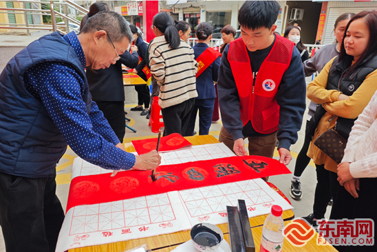 书写春联送祝福(新店社区新时代文明实践站 供图) 东南网1月25日讯(记者 夏菁 通讯员 洪党育 汪嫣滨)写春联、送祝福,多彩活动迎新春。连日来,厦门市翔安区依托新时代文明实践阵地开展了多姿多彩的迎新春主题活动,为群众送上了满满的新春祝福和暖心服务,辖区处处洋溢的文明新风也让“年味”越来越浓。 有联春更浓 送“福”到万家 为传承中华传统年俗文化,营造欢乐、喜庆、祥和的春节氛围,翔安区各新时代文明实践站开展书写春联、福字,以字为载体,以笔送祝福,把浓浓的年味和新春的祝福送给广大群众。 1月19日,新店社区新时代文明实践站携手厦门银行开展“我们的中国梦·文化进万家暨厦门银行暖心共建义写春联送温暖活动”。活动现场,书法家们饱含热情,挥毫泼墨、奋笔疾书,一副副饱含着浓浓年味、寓意美好的春联跃然纸上,为冬日增添了一抹暖色。 1月20日,桐梓社区新时代文明实践站开展“我们的节日 迎新春 送春联”主题活动,为社区居民送上新春的美好祝福。现场的居民一边欣赏书法创作,一边品评春联寓意,挑选着自己心仪的春联,每个人脸上都带着盈盈笑意。 1月22日,浦西社区新时代文明实践站组织居民开展“浓浓邻里情 墨香送祝福”写春联送福活动,为即将到来的龙年春节增添喜庆祥和的节日氛围。