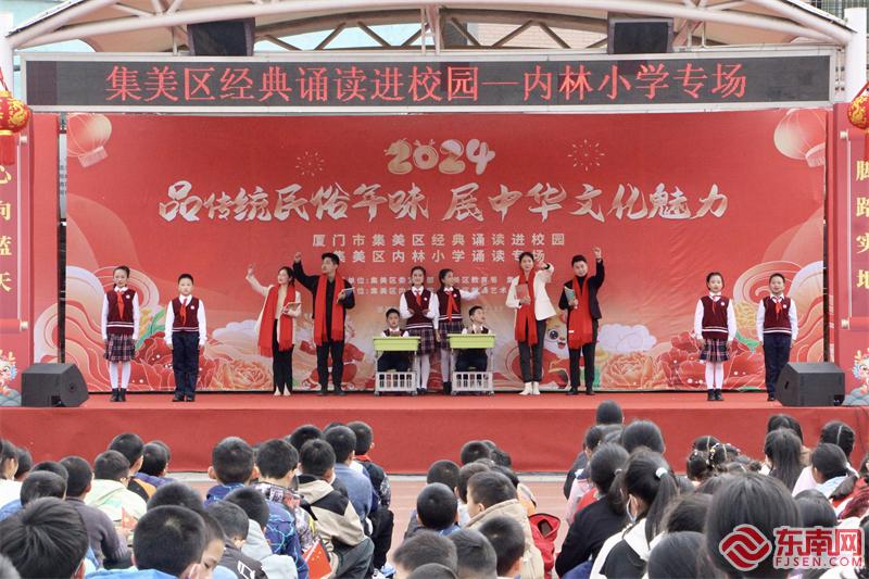 1月25日下午,厦门市集美区经典诵读进校园——“品传统民俗年味 展中华文化魅力”内林小学诵读专场举办。内林小学师生、家长及朗诵者们齐聚一堂辞旧迎新,在诵读中汲取精神力量,从民俗中吸收文化养分。