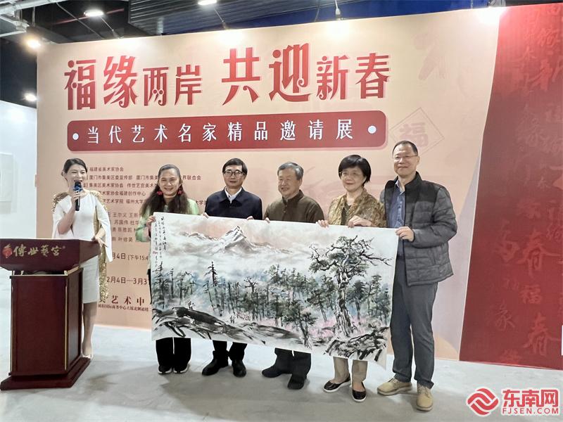 台湾艺术家合创作品赠送仪式(东南网记者 李霖 摄) 东南网2月4日(记者 李霖)2月4日,“福缘两岸 共迎新春——当代艺术名家精品邀请展”在厦门集美艺术中心开展,展出时间将持续至3月31日,在新春佳节为市民提供一个丰富多样的艺术盛宴。厦门市集美区委常委、宣传部部长庄志辉出席开幕式。 本次展览展出40多位两岸艺术家共计100余件作品,涵盖书法、国画、油画、漆画、雕塑、装置艺术等,是一场融合多种艺术门类的综合性艺术展览,展示了艺术的多元性和创新力,带来风格多样、形式丰富的艺术呈现。 集美区文联主席何庆余表示,此次展览中的每一件作品都是艺术家们精品力作,代表着他们对艺术生活现阶段的思考和表达。展览为两岸艺术家提供了文化艺术上交流碰撞、相互借鉴学习的平台。希望艺术家们能通过展览增进彼此了解,增进友谊。 “五福临门,喜迎新春”“福满四季,顺遂安康”……一笔一划皆是美好祝愿,字字蕴含细腻的情感。值此春节来临之际,展览期间还安排了“迎新春,送福联”活动,邀请艺术家挥毫泼墨,为市民送上美好祝愿。 本次展出由福建省美术家协会指导,集美区委宣传部、集美区文学艺术界联合会主办,集美区美术家协会、传世艺宫美术馆共同承办,得到厦门大学艺术学院、福州大学厦门工艺美术学院、 集美大学美术与设计学院等院校的学术支持。 |