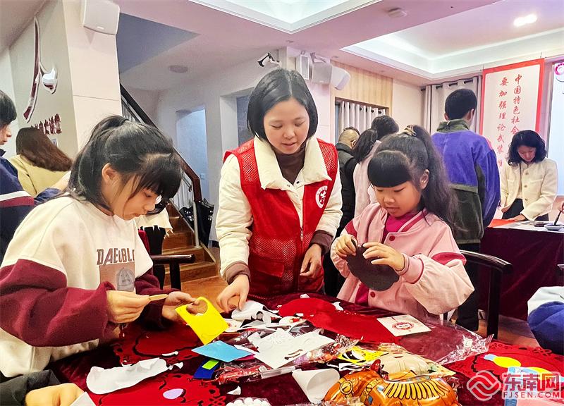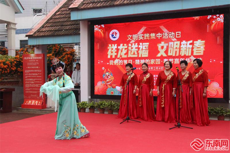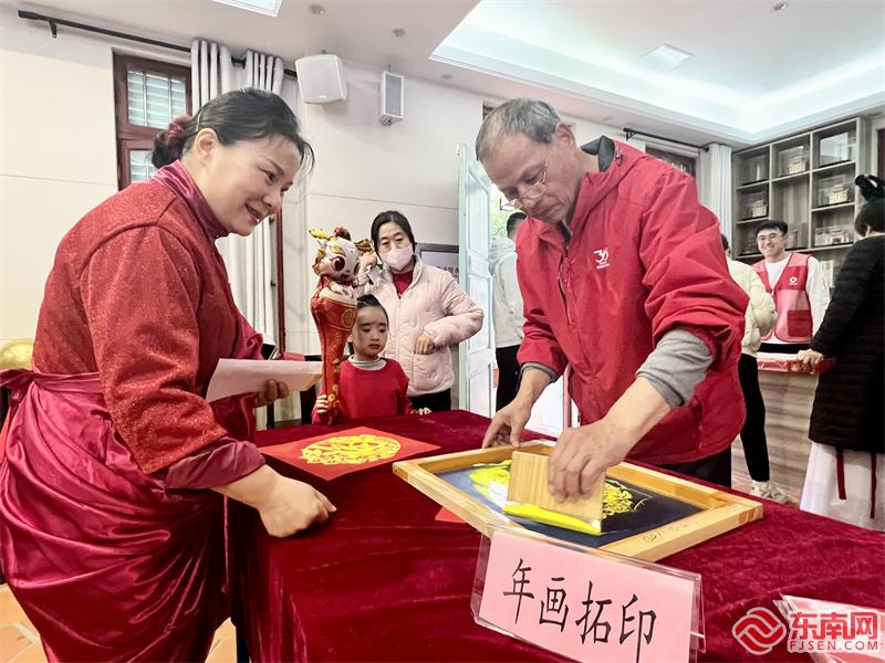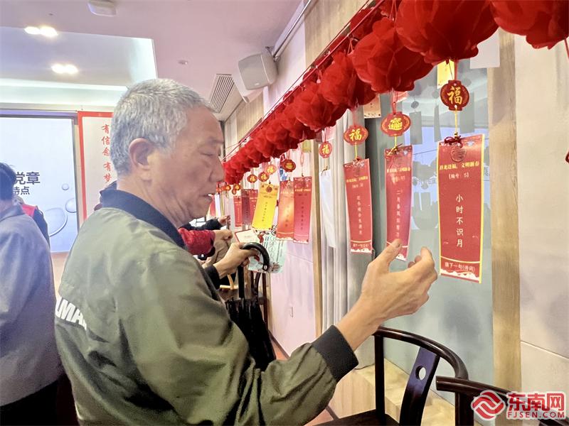 腰鼓舞《我是小可爱》(东南网记者 李霖 摄) 东南网2月5日讯(记者 李霖)2月4日下午,“祥龙送福,文明新春”我们的节日·精神的家园·春节嘉年华活动在厦门市集美区嘉庚书房举办,微才艺、微宣讲、送春联和丰富多彩的游园活动,让小小的嘉庚书房充满浓浓的新春祝福。 当天下午阴雨蒙蒙,但居民参与的热情不减。腰鼓舞《我是小可爱》敲出喜庆,跳出欢腾;舞蹈《梨花颂》、剧目舞蹈《抬龙王》展现出传统文化的多元传承与发展;合唱《鼓浪屿之波》唱出对团圆的期盼……现场,辖区各文艺团体拿出“看家本领”,秀出微才艺,花式贺新春。 “龙飞凤舞万象新,腾空逐浪千家春,集纳百福照天祥,美影十方道和顺。”厦门市书法家协会会员余薛锋现场悬空双手书法,以藏头诗的方式送上了“龙腾集美”的祝福。 活动还邀请集美大学副教授姚庐清以“认真学习党章,自觉尊崇党章,党的二十大党章修正案的时代特点”为主题开展理论学习微宣讲,让党的创新理论“飞入寻常百姓家”。 除了邀请书法老师现场写对联、送“福”字,现场还举办“年画拓印”“手工年画”“填词吟诗”“手作美食”“新语新愿”等游园活动,以居民喜闻乐见、生动活泼的形式,营造了浓厚的节日氛围。现场还设置了“赏年画 过大年”专区,一张张色彩鲜艳的年画,用年画“描绘”记忆中的年味,展现出传统艺术的特有魅力。 本次活动由中共集美区委宣传部、中共集美区委文明办主办,集美区新时代文明实践中心、集美区新时代文明实践志愿服务总队承办,嘉庚书房、岑西社区新时代文明实践站协办。