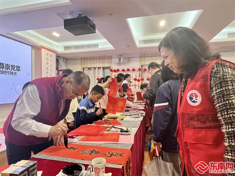 书法志愿者现场写春联(东南网记者 李霖 摄)