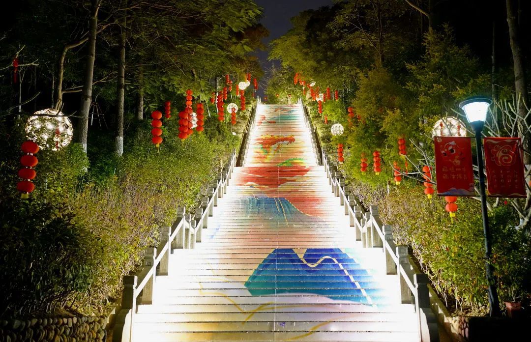 璀璨夜景美如画 在薛岭山公园 依托191级台阶 一段国画山水画的祥龙云梯不断延伸