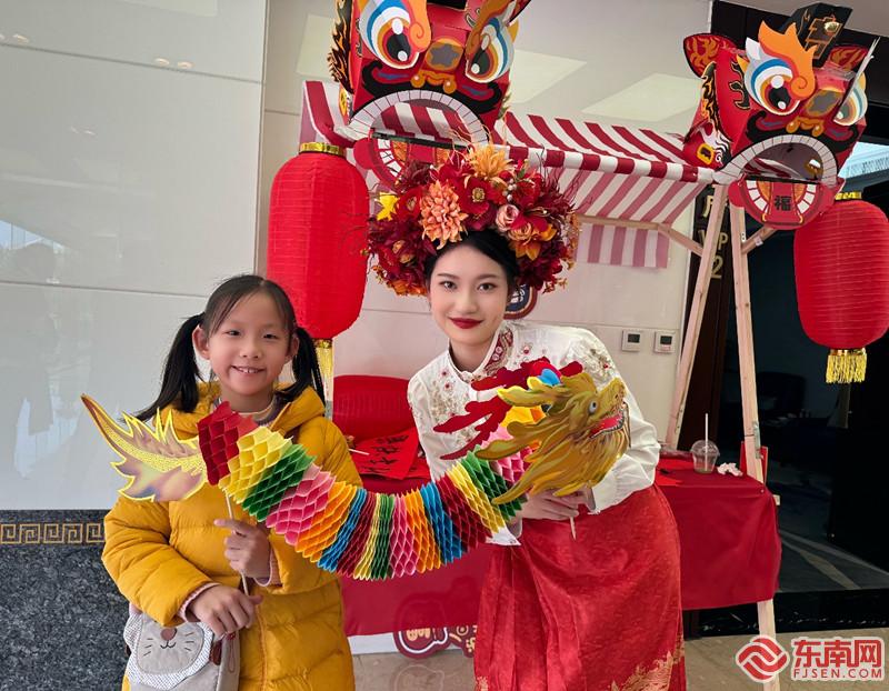 厦门机场T3、T4航站楼随处可见中国结、窗花等装饰(厦门机场供图) 春节期间,在厦门机场T3、T4航站楼,随处可见洋溢新春气息的红灯笼、中国结、福字、窗花等装饰;色彩明快的龙年春节主题景观,结合了闽南特色地域风情和机场元素,引来市民、旅客纷纷“打卡”、拍照;手工剪纸、福字拓印、新年抽签、送糖果等丰富多彩的春节主题互动,更有民间书法家为旅客写春联、送红包。