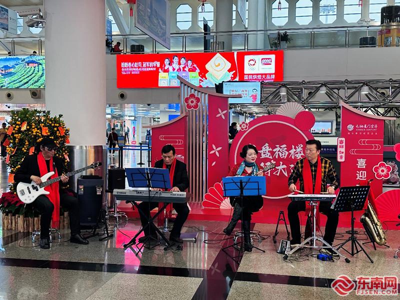 民乐送福音乐会(厦门机场供图) 元翔厦门空港还为广大市民及旅客精心准备了别出心裁的龙年惊喜。春节前夕,以“龙行大运·龙盘福楼”为主题的六场民乐送福音乐会,在厦门机场T3、T4航站楼陆续上演。来自厦门龙涓艺术团、馨之声艺术团的民间艺术家们精湛地演绎出了中国民乐与闽南“非遗”南音的文化精髓,吸引行色匆匆的旅客纷纷驻足观赏,面带喜悦的他们为艺术家们送上阵阵掌声。
