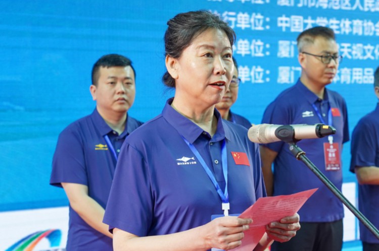 中国大学生体育协会游泳分会主席刘建萍。 中国大学生体育协会游泳分会主席刘建萍表示,高校体育工作的开展要全面贯彻落实党的二十大精神,帮助学生在体育锻炼中享受乐趣、增强体质、健全人格、锤炼意志。