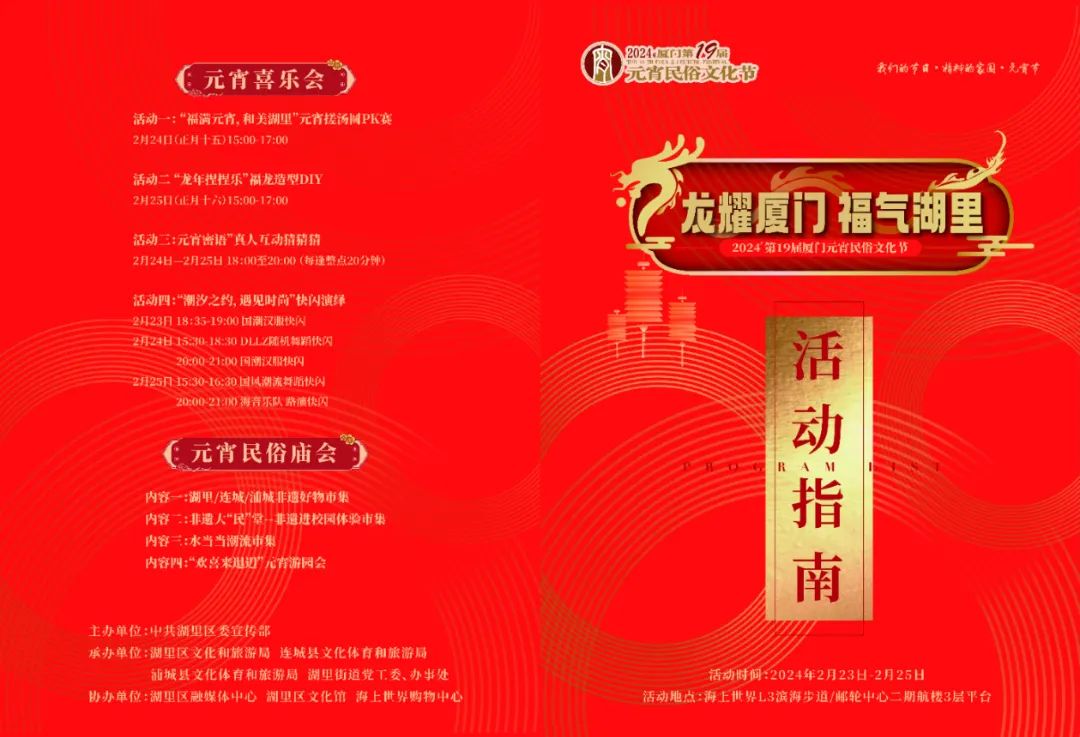 2月23日-2月25日 “龙耀厦门福气湖里” 第19届厦门元宵民俗文化节主会场活动 将在海上世界L3滨海步道举办