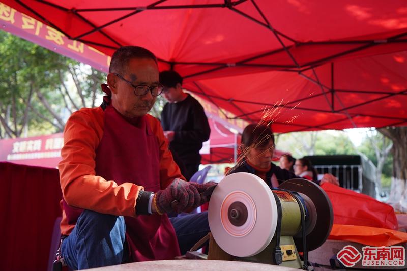 活动现场有各种便民服务,图为磨菜刀。(东南网记者 邹玒 摄)