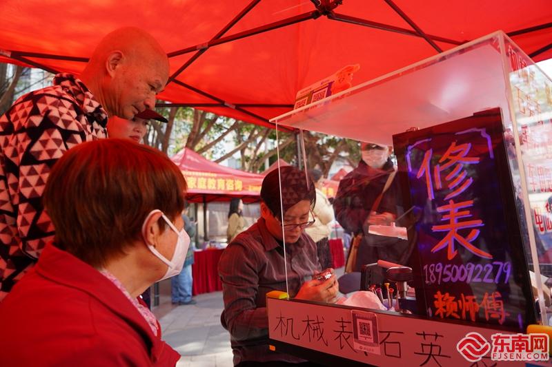 修表师傅认真地为居民检测手表。(东南网记者 邹玒 摄)