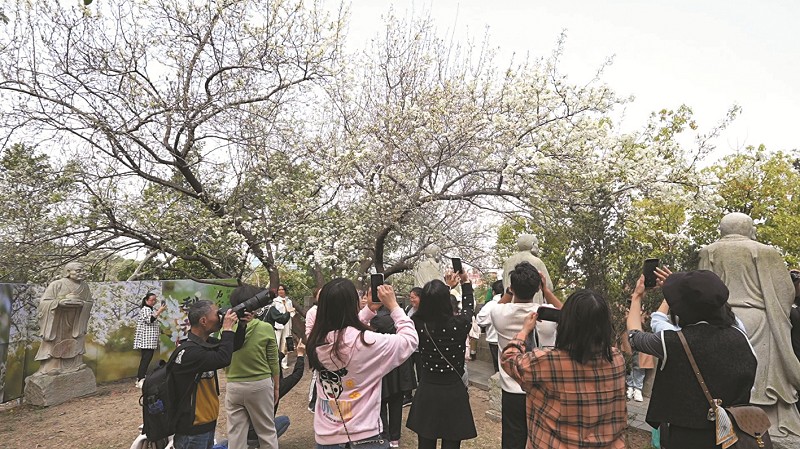 东南网3月7日讯 (海峡导报记者 朱黄 郑丽金/文 叶鑫洋/图)枝枝盈雪春意闹,朵朵梨花笑开颜。最近,海沧石室禅院的梨花林次第开放,花开成片,犹如白色的锦缎,素净嫣然,圣洁高雅,醉了整个春天,引来许多市民赏花打卡,游客如潮。“厦门成片开花的梨花观赏林不多,石室禅院也算是新开辟了一个踏春的打卡点。”游客们感叹,在纷纷落白间,在春天的气息中,忘掉了生活的繁杂与纷扰,找回了心灵久违的安宁。