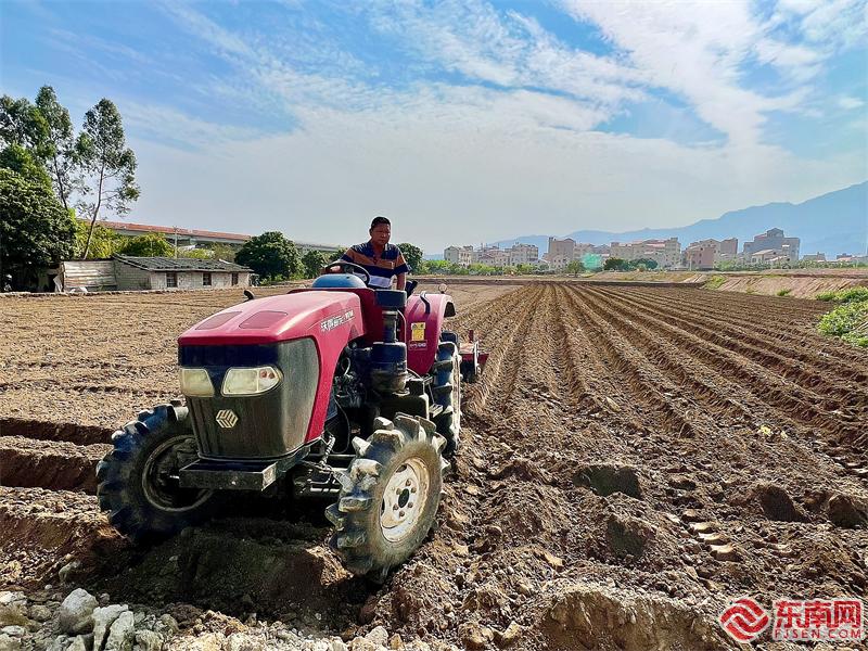 农耕机在田间来回穿梭作业。(东南网记者 李霖 摄)