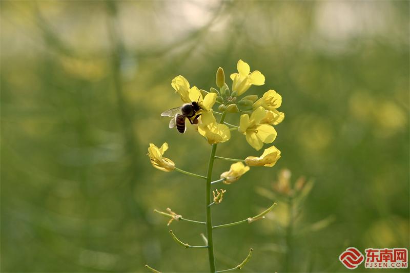 油菜花田中,蜜蜂采蜜忙。(东南网记者 李霖 摄)