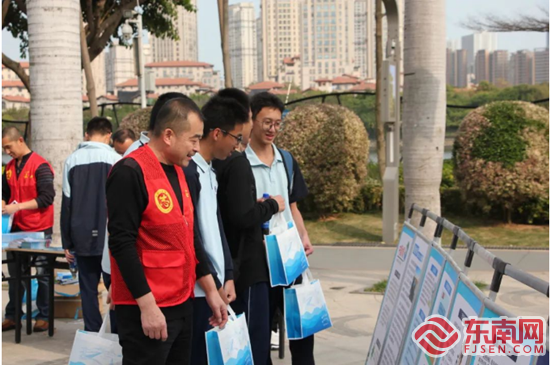 工作人员向群众发放宣传资料(金山街道供图) 东南网3月22日讯(记者 夏菁 通讯员 林润钰)2024年3月22日是第三十二届“世界水日”。3月22-28日是第三十七届“中国水周”。3月30日是厦门市河(湖)长日。21日下午,厦门市湖里区金山街道在湖边水库公园开展爱护河湖、节约用水宣传活动,积极营造惜水、爱水、护水的良好氛围。 当天,来自金山街道河(湖)长制办公室、后坑社区、湖边水库管理所的工作人员及志愿者等在湖边水库公园开展节水宣传,并对周围环境进行全方位清理,以实际行动践行环保理念。现场还准备了大量的爱护河湖、保护水资源、节约用水的宣传资料,图文并茂地展示了水资源短缺的严峻形势、河长制的意义、节水技巧等,吸引了许多居民驻足观看,认真听取志愿者的讲解。