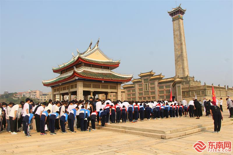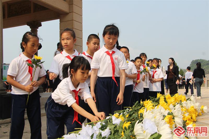 学生有序向陈嘉庚先生墓献花(东南网记者 李霖 摄)