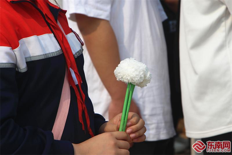 学生手握亲手制作的花束(东南网记者 李霖 摄)