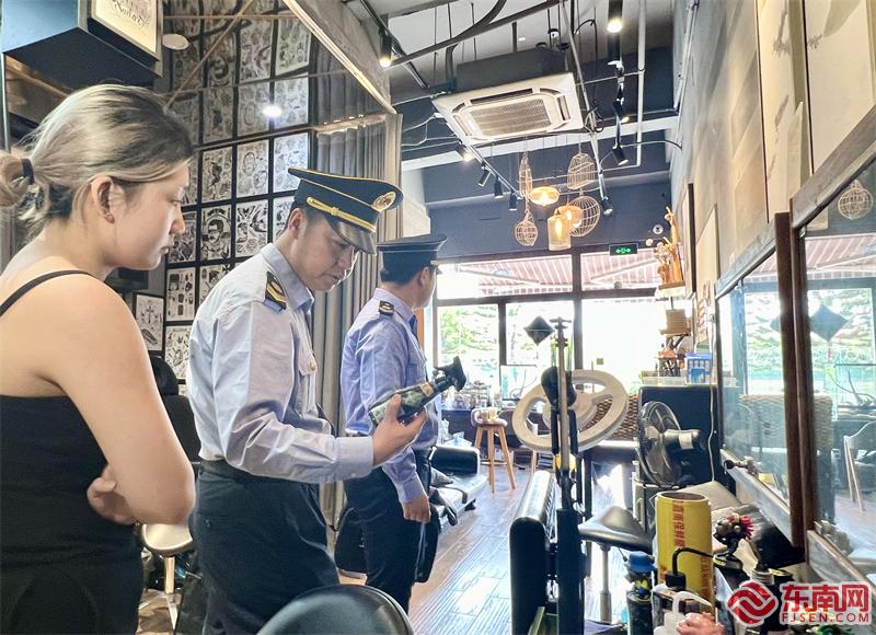卫生监督员检查生活美容场所用品(东南网记者 李霖 摄)