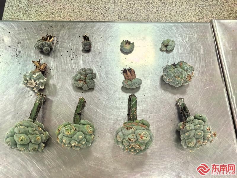 厦门海关查获12株强致幻性仙人掌。(厦门海关供图) 东南网4月25日讯(记者 卢超颖 通讯员 周庄桐)24日,经专业机构鉴定,厦门海关所属机场海关在入境旅客行李中查获的12株多肉植物为强致幻性仙人掌乌羽玉,这也是该关首次查获该类植物。 此前,一名旅客选择无申报通道通关,关员在对其行李进行查验时,发现箱内有用报纸和纸巾层层包裹的球形多肉植株12株,共计5.82千克。经专业机构鉴定,上述多肉植株均为强致幻性仙人掌——乌羽玉。 据厦门海关人士介绍,乌羽玉是多年生肉质植物,通常分布于墨西哥中部和美国西南部干旱地区,具有很强的致幻性,在其种籽、花球中可以提取强致幻剂——麦司卡林,如误食会造成头晕、腹痛,可令人长时间产生幻觉、精神错乱,严重的甚至威胁生命。此外,未经检疫的植物引入可能带来有害生物传入风险。 厦门海关提醒:根据《生物安全法》《进出境动植物检疫法》及其实施条例等法律法规,未经批准,不得擅自引进外来物种,禁止携带、寄递活体动植物进境。违反规定的,海关将依法追究法律责任。目前,该关已对上述植株做销毁处理。