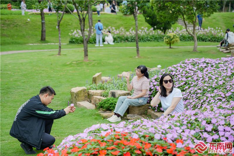 市集活动吸引了众多游客前往参与。(主办方供图) 记者在现场看到,在厦门植物园中,一场别开生面的音乐盛宴正在上演。以山林为幕,音符穿梭,游客们正随着旋律摇曳。在植物园闽台园里,活动以深化两岸青年文化交流为宗旨,通过闽台特色摊位和诗词文化展出,向游客展示中华文化的创作之美。此外,新设立的彩虹圣地打卡点也备受游客喜爱,成为拍照留念的热门地点。来自广东的游客王小姐激动地说:“植物园中的音乐之旅,如梦如幻,感觉疲惫的身心在这里都得到了放松。” 值得一提的是,百花厅内,沙漠玫瑰主题的展览成为全场焦点,为游客带来了一场视觉享受。狮山园的马鞭草花海,再现了童话般的浪漫场景,令人流连忘返。而花卉园展围绕花卉鼠尾草,以“梦幻花海,美不胜‘鼠’”为主题,精心配植绣球花、马鞭草、夏堇、醉蝶花、向日葵等共计6万株新优时令花卉,构建了一幅绚丽多彩的花海画卷,让游客仿佛置身于花的海洋中。