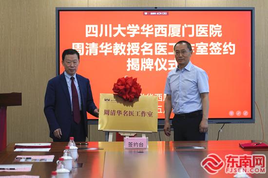 签约揭牌仪式现场(华西厦门医院供图) 东南网5月12日讯(记者 李霖 通讯员 秦颁)5月11日上午,四川大学华西厦门医院举行周清华教授名医工作室签约揭牌仪式,该院肺癌中心正式开科运行。 四川大学华西厦门医院(以下简称:华西厦门医院)是国家区域医疗中心建设单位,胸部与呼吸疾病中心是医院的优势学科,延续和传承着华西医学中心多个国家临床重点专科品牌。华西厦门医院肺癌中心是与本部同质化管理的肺癌中心。四川大学华西医院肺癌中心是一个按肺癌单病种,将肺癌筛查、早期诊断、肺癌预防控制、临床诊断、MDT(多学科团队)治疗、康复,以及肺癌基础研究、转化医学研究相关学科组建为一体的单病种中心,可为患者提供国际领先水平的诊疗。 周清华名医团队由来自华西医院肺中心/肺癌研究所多学科综合治疗团队的40名专家学者组成。团队将按照四川大学华西的模式组建华西厦门医院肺癌中心,以远程门诊、远程会诊、远程MDT讨论、远程查房等多种模式及方式帮助华西厦门医院肺癌中心学科发展、人才培养等,提升与发展多学科综合治疗水平。 周清华表示,肺癌是我们国家发病率和死亡率增长最快、对人群健康和生命威胁最大的恶性肿瘤,无论是男性还是女性,肺癌发病率和死亡率均居恶性肿瘤的首位。“我将与我的团队一道,尽我所能为华西厦门医院肺癌中心的建设和发展,为厦门市肺癌防治事业贡献我的微薄之力。”