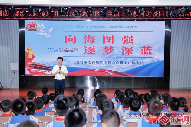 现场举行了“思政第一课”国防知识讲座(东南网团队摄) 系列活动精彩纷呈 国防教育入脑入心 青少年是祖国的希望和未来,也是全民国防教育的基础。在接下来的系列活动中,思明区将结合实际情况,在辖区各中小学开展多种形式的国防教育活动,让国防教育在青少年群体中入脑入心。 一直以来,思明区始终高度重视全民国防教育工作,推动全民国防教育进校园活动的持续开展,并将其作为提高市民国防意识、增强国家安全意识的重要途径。通过丰富多样的形式,思明区不断加强国防教育的普及和深化,让国防观念深入人心,成为每个市民的自觉行动。 思明区全民国防教育进校园系列活动的启动,标志着思明区在加强青少年国防教育方面又迈出了坚实的一步。此次活动的举办,将为培养更多有理想、有道德、有文化、有纪律的新时代爱国青年奠定坚实基础,引领广大青少年奋发自强、爱党爱国,奋力谱写新时代新篇章。 |