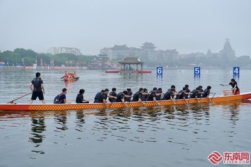 阴雨绵绵,参赛队伍备战龙舟池(东南网记者 李霖 摄)