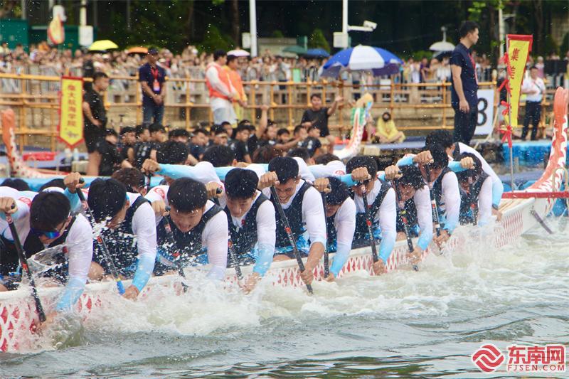 集美大学龙舟队在“龙舟拔河”赛场上。(东南网记者 李霖 摄) 东南网5月26日讯(记者 李霖)5月26日下午,第九届中国龙舟拔河公开赛在厦门集美龙舟池激情上演。经过激烈的角逐,集美大学龙舟队获得冠军、“拔”得头筹,集大轮机学院龙舟队、集大航海学院龙舟队分别获得亚军、季军。 “龙舟拔河”是在陆上拔河基础上延伸的一项水上竞赛项目。龙舟拔河与陆地拔河类似,两艘龙舟龙尾对龙尾,中间由一根绳索相连,两边的龙舟上各有23名选手,反向而坐、反向划桨,比赛以龙舟中间的标尺线在规定时间内的偏向作为获胜标准。 随着裁判员鸣笛发令,选手们齐心协力、奋力划桨,龙舟两侧水花翻飞,加油声与呐喊声响彻龙舟池畔。与传统直道竞速赛相比,龙舟拔河不比拼速度,而是对划手的爆发力、耐力、团队协作能力都有着极高的要求。龙舟两两对决、激烈对抗,使比赛更具趣味性和观赏性。 2014年,首届中国龙舟拔河公开赛落户集美龙舟池,开创了中国龙舟拔河公开赛正式竞赛项目的先河,之后连续成功举办了八届,集美成为唯一一个持续举办中国龙舟拔河公开赛的赛区。本届中国龙舟拔河公开赛共有12支队伍参赛。 |