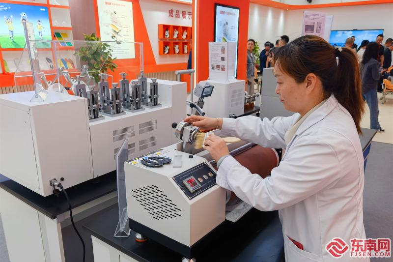 在研发区,工作人员进行材质耐磨测试(东南网记者 刘玮 摄)