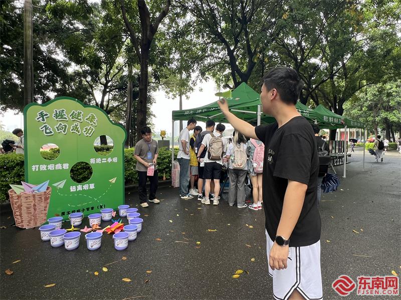 在场师生拆“盲盒”,参与健康知识问答。(东南网记者 李霖 摄) 东南网5月31日讯(记者 李霖)“青春正好 烟草勿扰”“吸烟害三代 上瘾毁一生”“考研考编要上岸 烟草陷阱别上当”……5月31日上午,厦门工学院食堂前,身着黄马甲的“控烟大使”拿着印有趣味标语的控烟手举牌,向来往的老师、同学们宣传控烟知识。 今年5月31日是第37个世界无烟日,主题是“保护青少年免受烟草危害”。连日来,集美区爱卫办、集美区疾控中心、后溪镇卫生院与厦门工学院携手举办“健康人生,远离烟草”系列宣传活动,以青少年为主力,吸引青少年广泛参与,展现控烟“青合力”。 “尼古丁会影响青少年大脑发育,导致学习障碍和焦虑症……”活动现场摆放无烟日主题布景、科普宣传展板,通过主题突出、内容丰富又富有视觉冲击力的海报,引导师生进一步了解烟草的危害,提高控烟意识,养成文明健康的生活方式。 此次活动突出趣味性和互动性,现场设置了健康知识“盲盒”“打败烟瘾君”等互动游戏。参与者随机抽取“盲盒”,并回答其中的戒烟控烟健康知识,即可获得相应奖励。师生们还动手折纸飞机,“放飞”对健康生活的追求,坚定控烟决心。 现场,一群“控烟大使”穿梭在人群中,显得格外亮眼,大三学生小贾就是其中之一。小贾告诉记者,高中毕业后,他在好奇心的驱使下开始吸烟,“后来发现总是咳嗽,人也没精气神,不想运动了。”大一期间,他踏上了戒烟的道路并加入了学校的控烟服务队,参与校园控烟巡查,分享戒烟心路历程,如今累计志愿服务时长已超过100个小时。