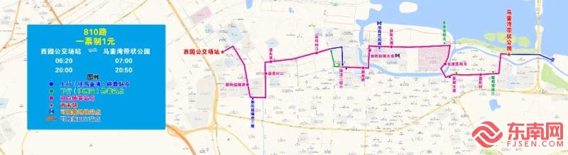 810路公交线路图(厦门运输中心供图) 2.810路:根据沿线乘客出行特征,调整810路的首末班时间,以方便马銮湾新城的马銮湾地铁社区、新阳居住区等小区居民,以及招商花园城商圈、马銮湾带状公园乘客出行。西园公交场站首末班时间调整为6:20-20:00,马銮湾带状公园首末班时间调整为7:00-20:50。 |
