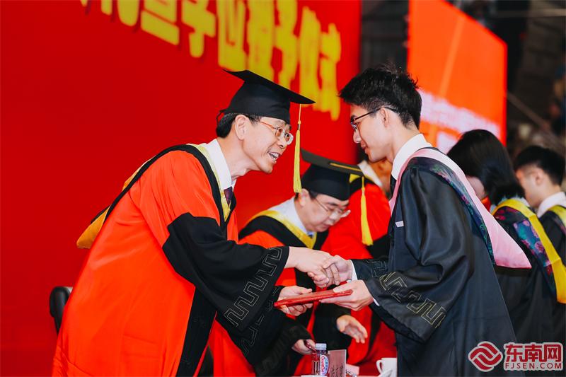 集美大学2024届学生毕业典礼在光前体育馆举行(集美大学供图) 东南网6月21日讯(记者 李霖 通讯员 刘金昆)6月21日上午,集美大学举行2024届学生毕业典礼暨学位授予仪式,7000多名毕业生齐聚一堂,共同见证这一难忘时刻,携手开启人生崭新篇章。 现场宣读了2024届研究生、本科生学位授予决定和优秀毕业生表彰决定。集美大学党委书记沈灿煌为2024届优秀毕业生代表颁发荣誉证书,全体校领导为毕业生代表颁发毕业证书。 集美大学党委副书记、校长谢潮添以“做更好的自己”为主题,发表了热情洋溢的讲话。他深情回顾了2024届全体毕业生“与集大共成长”留下的专属“集大记忆”,对毕业生如何应对复杂多变的社会提出希望。他勉励全体毕业生要以“诚”为本、以“毅”立身,做真实、勇敢的自己;要追求卓越、确立目标、认准方向、坚定信念、奋力拼搏、坚韧不拔、持之以恒,做更好的自己。 食品科学与工程94级校友、四川大学生物治疗国家重点实验室研究员、博士生导师胡洪波作为杰出校友代表发言,他回顾了自己在母校求知奋斗的历程,结合自己的学习工作经历,勉励毕业生勇立潮头、坚定理想、坚持学习,迈向成功和卓越。轮机工程学院副院长吴德烽、海洋信息工程学院张雷、工商管理学院赵子雯分别作为教师代表、研究生毕业生代表、本科毕业生代表发言。 毕业典礼在全体毕业生合唱校歌声中落下帷幕。在学位授予仪式上,校、院领导为全体毕业生拨正流苏并合影留念。毕业典礼线上线下同步进行,超35万人次在线观看了毕业典礼视频及图片直播。 |