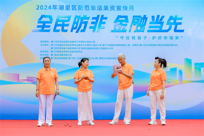 为贯彻落实中央、省委、市委金融工作会议精神,严厉打击非法集资等非法金融活动,有效发挥金融系统融通各方优势,进一步提高辖区居民风险防范意识和识别能力,在厦门市防范和处置非法集资工作领导小组办公室的指导下,6月15日,“全民防非·金融当先”2024年湖里区防范非法集资宣传月集中宣传日活动在联发华美空间顺利举办。