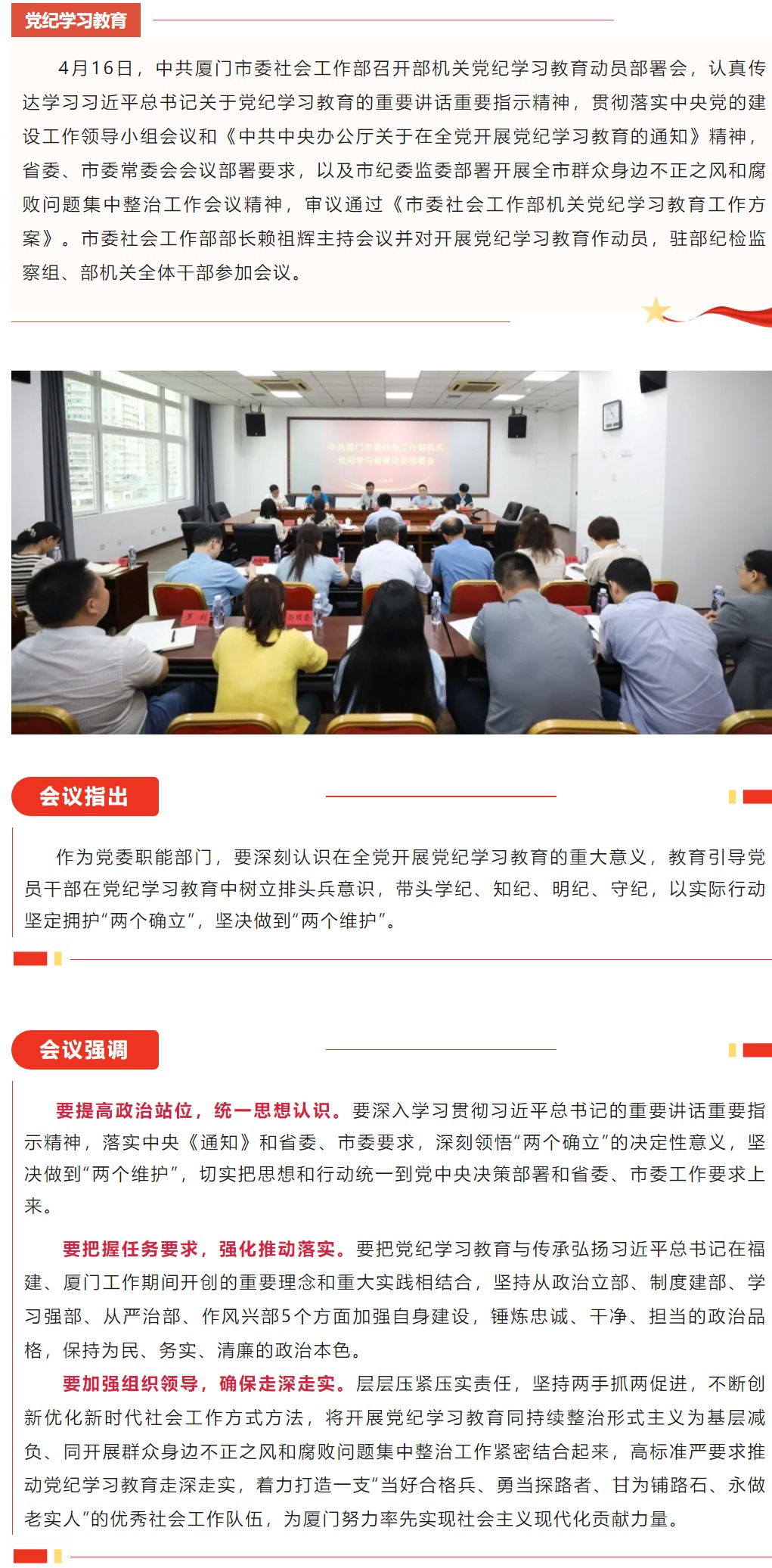 市委社会工作部召开部机关党纪学习教育动员部署会