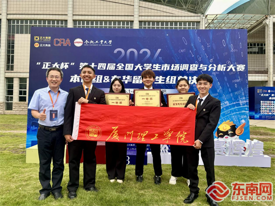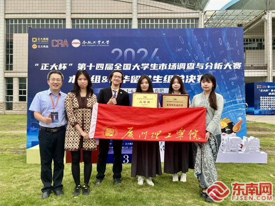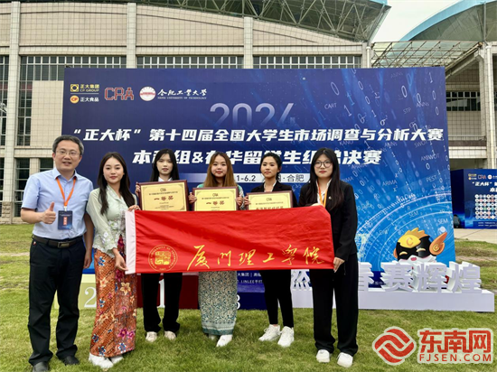 总决赛一等奖团队——厦门理工学院“冒光的金鲤鱼队”(厦门理工学院供图) 东南网6月26日讯(通讯员 曾妙龄)日前,第十四届全国大学生市场调查与分析大赛本科生组和在华留学生组总决赛在合肥工业大学举行。由厦门理工学院国际教育学院国际学生和经管学院学生组成的3个团队全部入围总决赛,并获得总决赛一等奖2项、二等奖1项,厦门理工学院获“最佳院校组织奖”。 大赛紧密对接我国经济发展趋势与市场需求,着重培养学生的商业洞察力与前瞻性思维,激发他们的创新意识和对相关行业市场的感知,为促进高校学科交叉融合、产教融合,培养具有调查研究能力的高层次复合型人才提供有力支持。大赛连续5年跻身《全国普通高校学科竞赛榜单》,是全国公益性专业品牌赛事,也是“学术引领、政府支持、企业认可、海内外联动”的协同育人平台。今年首次创设了在华留学生组,共吸引了来自全国各地1063所高校的29.5万名学生报名参赛。经过知识赛、校赛、企业命题赛、省赛、全国赛初赛等环节,最终有150多所高校的240支本科生团队和69支在华留学生团队入围现场总决赛。