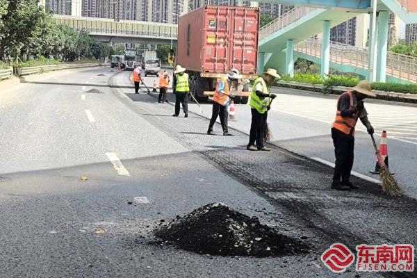 东南网7月11日讯(记者 刘玮 通讯员 林阿娜)随着7月的到来,厦门迎来了高温天气。“烧烤”模式下,厦门的公路养护工人们不畏炎热,在公路养护的第一线为市民的出行提供保障。