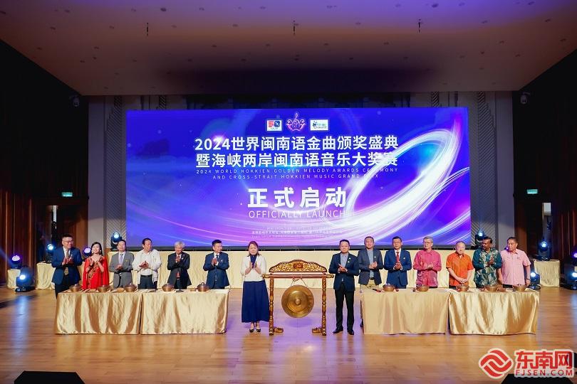 闽南语金曲盛典启动仪式(主办方供图) 东南网7月15日讯(记者 段马水)7月14日下午,2024世界闽南语金曲颁奖盛典暨海峡两岸闽南语音乐大奖赛(简称“2024世界闽南语金曲盛典”)全球启动仪式在马来西亚举行,2024世界闽南语金曲盛典正式拉开序幕。当晚,来自世界各地优秀的闽南语歌手汇聚马来西亚,参加世界闽南语金曲盛典“中马之夜”,共庆中马建交50周年暨“中马友好年”。 闽南语音乐盛典再次开启 7月14日15时,在厦门大学马来西亚分校陈华春音乐厅,世界闽南语金曲盛典的5位全球总冠军携手往届优秀歌手,一起合唱《爱拼闽南人》,为2024世界闽南语金曲盛典全球启动仪式开场。 为提高赛事专业水平,组委会还向一批专业音乐人士颁发了世界闽南语金曲盛典评委聘书、音乐总监聘书、音乐发展论坛聘书,并举行授牌仪式,向海外联络处、闽南语音乐公益使者、战略合作单位、各赛区召集人等颁发牌匾。 世界闽南语金曲盛典是一个具有创新性、独特性、世界性的音乐文化品牌,由全球音乐界权威人士组成评委会,赛事旨在打造规模大、辐射广、专业性强的世界级闽南语金曲颁奖盛典;搭建一个立足闽南本土,辐射全球的平台;树立闽南语音乐文化标杆;用音乐架起与世界沟通的桥梁,在世界舞台上讲好中国故事,推动中华文化更好地走向世界。 世界闽南语金曲盛典赛从福建出发,唱响闽南语音乐最强音,助力福建建设两岸融合发展示范区,促进福建文化产业发展升级。赛事以闽南语音乐为纽带,通过主题鲜明、形式多样、参与面广泛的各项活动,凝聚与港澳台同胞以及海外华侨华人的情感,架设闽商、台商、侨商沟通交流的桥梁,将为福建带来新一轮宣传、投资热点。