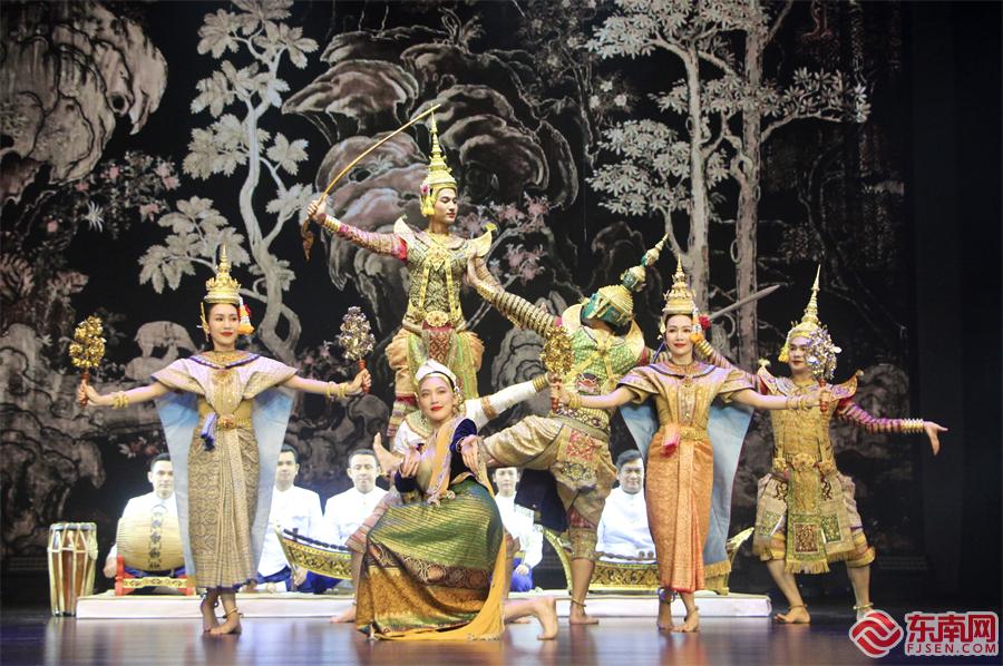艺术家们身着华丽服饰登台亮相(东南网记者 李霖 摄) 东南网7月27日讯(记者 李霖)孔剧、泰国木偶剧、泰国木琴演奏、宋干节节庆舞蹈……为庆祝中泰建交49周年,献礼“中国-东盟人文交流年”开启,7月26日晚,“泰国-福建丝路情(奇幻泰国系列)”文化活动在厦门市集美区青少宫拉开帷幕。一系列独具泰国特色的节目轮番登场,为现场观众带来了一场极具震撼力和观赏性的视听盛宴。 现场,泰国艺术发展学院15名顶尖的音乐和舞蹈艺术家们,以其娴熟精湛的技艺和独特的艺术表现力倾情演绎了九个节目,其中包括泰国最为经典的传统文化曲目以及泰国各地区的代表性舞蹈片段。 随着低沉厚重的隆隆鼓音由轻渐重,艺术家们身着手工绣制的华丽服饰,戴着具有独特标志、反映角色特征的精美面具与金光夺目的宝塔帽翩翩起舞,献上泰国文化瑰宝和最高戏剧艺术——孔剧,引领观众踏足神秘国度,感受古老土地上独有的风情与魅力。 除了融合舞蹈、武术、音乐、叙述、诗歌等于一身的孔剧,观众还得以亲耳聆听泰国代表性传统乐器泰国木琴演奏,欣赏热情洋溢、充满活力的宋干节节庆舞蹈,与被认为是亚洲最有影响的三大木偶剧种之一的泰国木偶剧的木偶人像近距离互动。 演出尾声,深情柔婉的《鼓浪屿之波》与泰式风情的婀娜舞姿交融呈现,别具一格的视听感受收获了满堂喝彩,将演出推向高潮。值得一提的是,这个名为《泰国-福建丝路情》的舞蹈节目是泰国艺术家专为此次在厦门的首场演出而精心编排的,生动再现了同为海丝沿线枢纽的泰国与福建多元文化融合共生的盛况,表达了中泰两国山水相连、人文相亲滋生而出的深厚情谊。 本次文化活动在福建省人民政府外事办公室的支持下,由泰王国驻厦门总领事馆、厦门市集美区人民政府外事办公室、厦门市集美区文学艺术界联合会主办,东盟文化经济交流中心承办,厦门市集美区文化和旅游局协办。 |