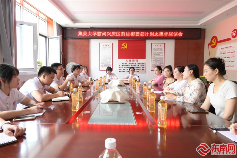 实践队师生看望慰问西部计划志愿者(集美大学供图) 赓续闽宁协作 讲好奋斗故事 “到西部去,到基层去,到祖国和人民最需要的地方去”“志合者,不以山海为远”是广大西部计划志愿者的共同理想信念。从闽海之滨到塞上江南,一批集美大学西部计划志愿者续写新时代的闽宁故事,奔赴山海发光发热,让青春之花绽放在祖国最需要的地方。 实践队师生来到宁夏兴庆区前进街街道办事处、海原县委组织部,看望慰问集美大学西部计划志愿者岳洋和邹佳丽,并与用人单位和西部计划项目办负责人座谈交流,了解志愿者跨越山海,深入基层,将青春之花绽放在美丽新宁夏的生动实践,表达母校对志愿者的关怀。实践队还拍摄了主题微宣讲视频,宣传西部计划志愿者在宁夏的奋斗事迹。 |