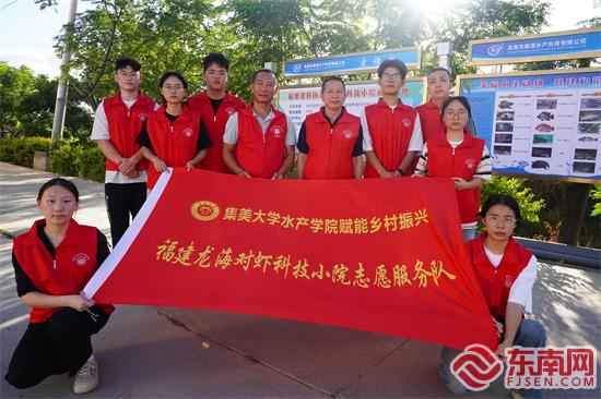集美大学“福建龙海对虾科技小院”实践队在漳州(集美大学供图) 东南网7月31日讯(通讯员 吴志远 许金震)近日,集美大学“福建龙海对虾科技小院”实践队前往漳州市开展“引智下乡”专项实践,师生扎根一线,以实地调研、参观走访、座谈交流、科普宣讲等形式开展支农助农活动。实践队师生以科技为引擎,以实践为燃料,为当地养殖户带去先进养殖技术的同时,也为福建乡村振兴事业提供了“集大方案”。 产学研融合 引领水产健康养殖新篇章 福建龙海对虾科技小院由集美大学教授黄永春负责组织专家团队,依托龙海市顺源水产科技有限公司,服务于创新驱动发展战略和乡村振兴战略,是中国农技协认定的福建省第六批科技小院。科技小院通过高校、企业、政府有机融合,促进科研成果转化落地、先进水产养殖技术推广及服务乡村振兴力量下沉。科技小院建立以来,授权发明专利1件、实用新型专利15件、发表论文15篇,为对虾产业的持续发展提供了强有力的理论技术支持;推进人才培养,培训了一批有能力、肯奉献的新型人才,为实现农民增收、农业增效和农村绿色发展贡献了力量。 近年来,团队带动龙海区13个乡镇2989户,以及辐射漳州其他县市、福州、宁德与广东、江西、湖南、浙江等养殖户开展对虾养殖,合计5054户;在龙海、漳浦、诏安、东山等地开展养殖技术培训,合计三千多人次;在养殖前、中、后关键期现场指导养殖户放苗、投料、用药、水质调控和病害防控等技术服务,累计三百多场次。通过不断引导养殖户更新养殖品种,推进生态养殖模式,以及送科技服务入户的方式,培养和造就了一批新型职业农民和科技示范户。这些举措不仅切实为养殖户解决实际问题,帮助养殖户致富,还推动了水产养殖业向规模化、高档次、高水平方向发展。