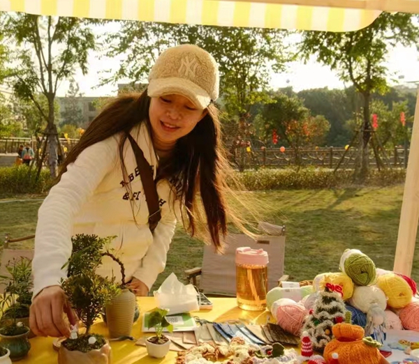 杨于萱参与筹备举办漳浦石榴镇填鸭文化节,展示文创产品。 缘起:从讲台到田野 以行动见证梦想 杨于萱的故事,要从学生的一句质疑说起。在台湾联合大学担任文学教师的日子里,她带着学生一边教书,一边做社区规划,每年寒暑假还会带学生来到厦门进行文化交流活动。每当她向学生介绍大陆广阔的发展前景和无限的机遇时,总有个别学生质疑:“老师,您自己都不在大陆工作,凭什么这样说呢?” 为了给台湾学生一个最真实的答案,也为了验证自己心中的那份向往,2019年,杨于萱毅然踏进厦门,成为海沧区过坂社区的一名社区营造员。这一步,对她而言,是跨越海峡的勇敢一跃,也是她乡村振兴梦想的起点。 在过坂社区,杨于萱借鉴台湾的社区营造理念,与村民同吃同住同劳动,深入挖掘乡村的文化底蕴,不断推出新的项目,乡村创意民宿、农家咖啡庭院如雨后春笋般涌现。“我就是想亲身实践给学生看,这里确实像我推介的那样,市场大,机会多!”杨于萱笑着说。 创业:从无到有 以文创点亮乡村 在过坂社区的成功实践,让杨于萱更加坚定了在大陆发展的信心。她觉得,做乡村振兴,必须有特色产业的支持。经过多方考察,2022年,她在集美区创办了厦门闲闲文创有限公司,并入驻聚融壹家台湾青年双创基地。在基地协助下,她从集美区领到了租房及办公场地补贴;在基地指导下,她获得了集美区台湾青年创新创业项目启动扶持资金;无论是不明白的生活问题,还是不了解的相关政策,都可以从基地得到满意的答复…… “在集美扎根发展,没了后顾之忧,心里特别踏实,公司业绩也越来越好。”杨于萱说,入驻基地后,公司接了不少单子,涉及特色产品文创包装设计,营地、民宿运营规划,以及村庄整体规划等,业务还拓展到了漳州、泉州等周边地区。 除了沉下心来做好文创设计,杨于萱还耐心倾听村民的需求和意见,将他们的智慧和创意融入到设计方案中,让乡村的每一个角落都充满了温度和故事。“她思路开阔,设计理念环保、时尚,有很多两岸融合的元素,发挥我们各自的优势。”公司大陆合伙人王志强介绍。