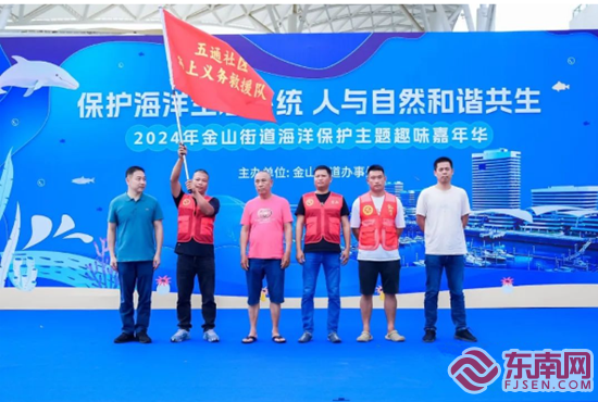 为五通社区海上义务救援队授旗(金山街道供图) 东南网8月21日讯(记者 夏菁 通讯员 林润钰)近日,2024年金山街道海洋保护主题趣味嘉年华在五缘湾厦门国际游艇汇举办。 活动现场,金山街道分管领导回顾了过去一年街道在海域整治工作方面所做的努力,强调了海洋保护工作离不开各级单位的支持和关心,也离不开每一位群众的参与,同时呼吁各界人士积极参与海洋保护行动,为保护和建设美丽海洋贡献力量。 当天,金山街道先后为五缘湾生态警务工作站授予“湾海生态卫士”、为五通社区海上义务救援队授旗、为金山街道海域巡查队授旗。