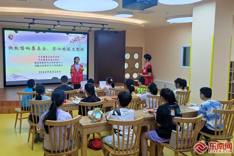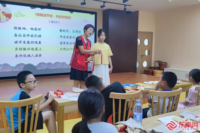 上台演绎,检验学习成果(陈艳 摄) 东南网8月27日讯(记者 李霖 通讯员 谢继彬)“快板响、响连环,各位且听我们讲,城市发展好现象……”连日来,琅琅童声、清脆响亮的竹板声回荡在厦门市集美区新时代文明实践中心。为期4天的“快板唱响集美安,齐心共筑文明城”快板学习系列课程在这里举办,旨在弘扬中华传统文化,让传统曲艺在新时代焕发新活力。 快板属于中国曲艺韵诵类曲种,是一种传统说唱艺术,它以其明快的节奏、生动的语言和丰富的表现力,深受广大群众的喜爱。活动邀请双岭村快板说唱团团长陈秀治授课。她从快板的起源与构造、如何正确持板、敲打技巧等知识讲起,并分别介绍了小板的基本点、单点、双点、混合点及大板的砸、扬、挑、扣等多种基本打法,风趣幽默的语言和极具感染力的示范表演让学员们学习快板的热情高涨。 现场,孩子们个个精神抖擞,挺起小身板,手中快板有节奏有韵律地拍打起来,练习得有模有样。陈秀治一边教一边对部分孩子进行纠正调整,提醒他们要注意语言、气息、情感和站姿等。为了让孩子们更直观地领悟快板学习要义,活动还邀请双岭村快板说唱团成员上台,通过节奏明快而富有韵律的示范演绎,让孩子们沉浸式感受快板的魅力。 “打快板好好玩儿,在敲击中投入情感,让我更有力量。”参加活动的小朋友肖又一边打一边说道。值得一提的是,课程还特别设置快板才艺展示环节,孩子们自信满满地登台,检验这段时间的学习成果,用充满活力的表演,为本次活动画上圆满的句号。 本次活动由中共集美区委宣传部、中共集美区委文明办指导,集美区新时代文明实践中心、信毅社区新时代文明实践站联合主办。接下来,集美区新时代文明实践中心将继续整合辖区丰富资源,发挥文化育人功能,积极搭建文化交流平台,创新服务形式,丰富服务内容,让人文集美绽放出璀璨文明之光。
