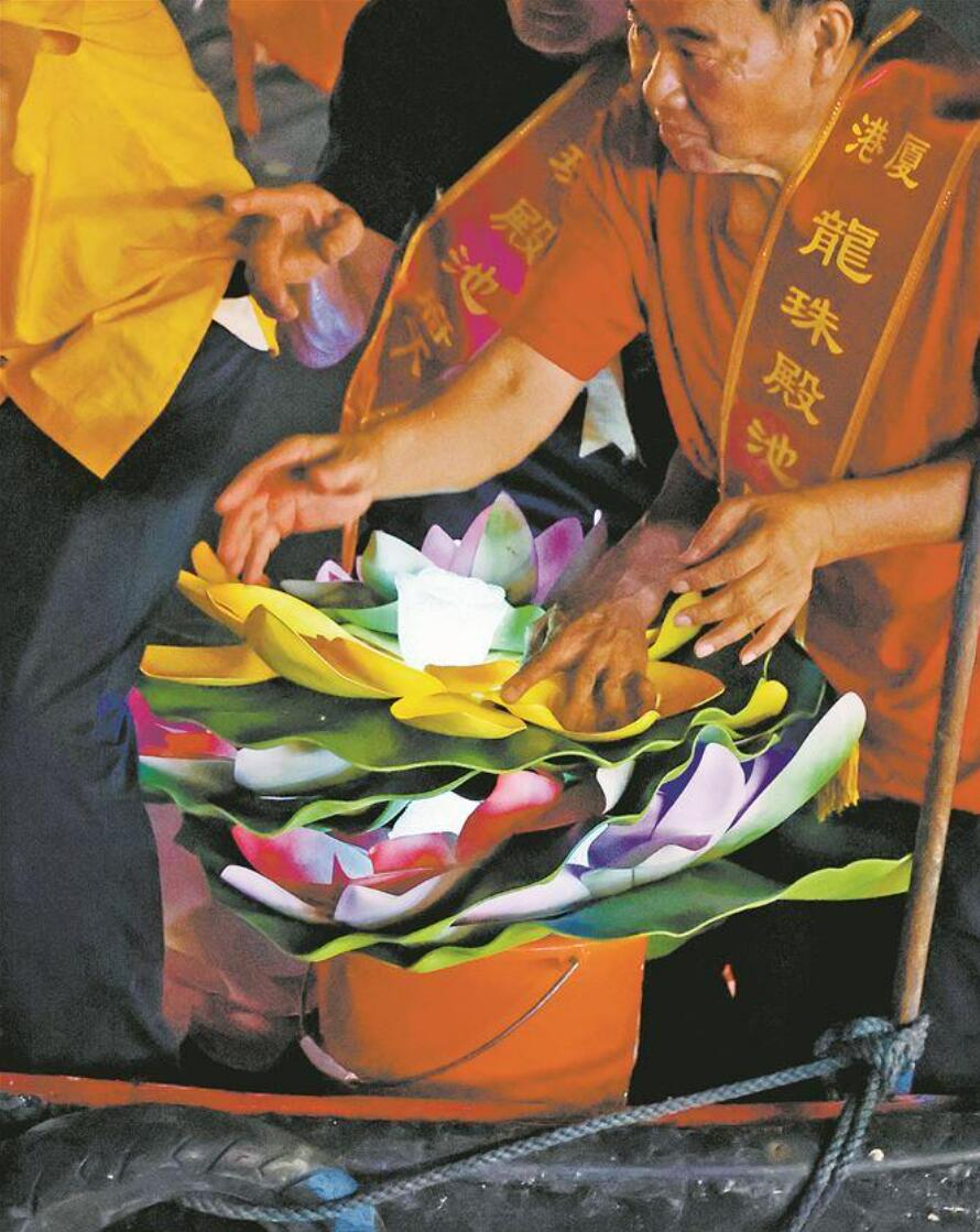工作人员乘船准备放水灯。(见习记者 赵博洋 摄) 厦门日报讯 (记者 吴燕如 通讯员 洪燕妮)昨晚七点半左右,一盏盏水灯被缓缓放入沙坡尾避风坞水中,慢慢漂向远方。放祈福水灯是市级非遗项目“厦门海普习俗”的重要组成部分、最精彩环节,也是这项民俗的最后一个项目。 一年一度的“厦门海普习俗”活动于每年农历七月廿六举行。昨日活动从下午持续至晚上,包括厦港龙珠殿海普祈福居民慰问、扎染等海洋技艺手工体验、阵头展演一系列环节。别具特色的仪式吸引了不少市民游客参观和体验。 工作人员介绍,今年共放了1200盏水灯,以荷花灯为主,最大直径长一米二,水灯均是环保材质。水灯明天如果没有漂出去,还会统一回收处理。 名片 厦门海普习俗 “厦门海普习俗”是福建旧时疍民祭祀疍家先民、追思先贤的传统仪式,至今已有百年历史。每年农历七月廿六,疍民都会举行一年一度的海普仪式。2022年,“厦门海普习俗”列入厦门市非物质文化遗产保护名录,成为展示厦门海洋文化的重要载体。 |