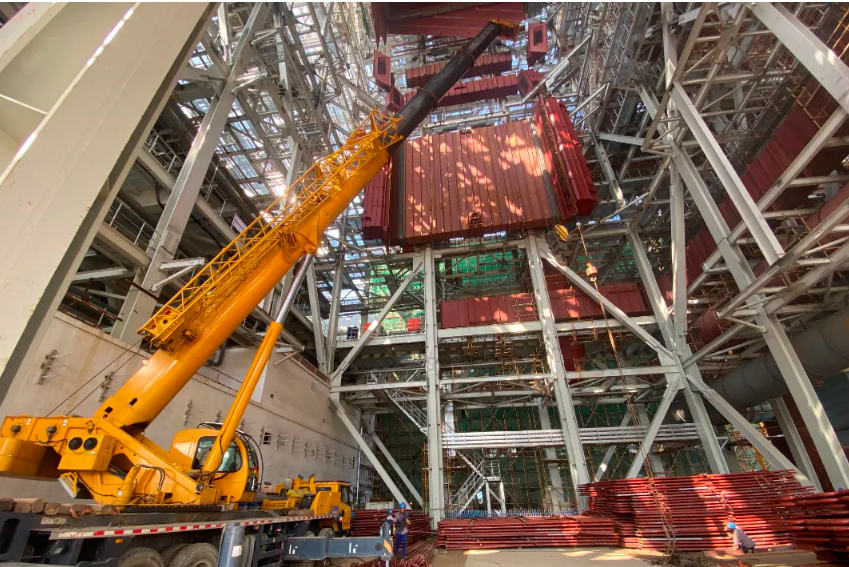 华夏电力一期机组等容量替代项目 #5机组已进入设备全面安装阶段! 金秋九月 在华夏电力一期机组等容量替代项目建设现场 处处塔吊林立、机器轰鸣 工程车来回穿梭 施工人员忙碌作业