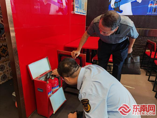 检查灭火器配备情况(集美区应急管理局供图)